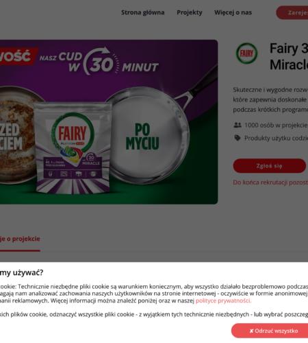 - Obowiązki po wyborze: przetestowanie produktu, publikacja rolki i instastory w mediach społecznościowych z hashtagami #WspółpracaReklamowa #FairyNaszCudW30Minut, napisanie recenzji na wskazanych platformach