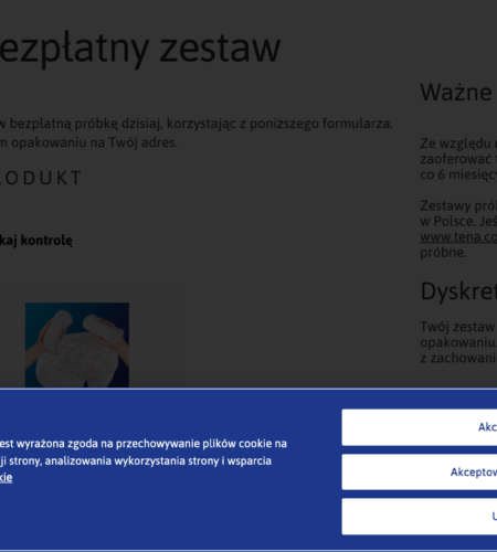 - Wejdź na stronę: tena.pl/tenalady/produkty/bezplatna-probka